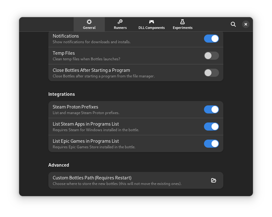 This new option can be useful to third party programs for better integrating with Bottles.