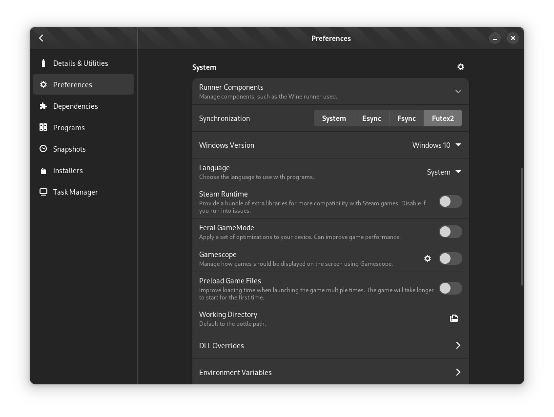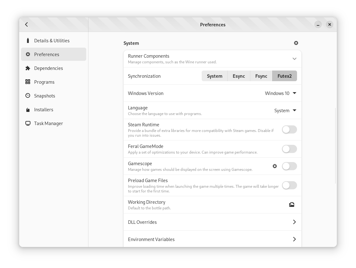 With this update we have changed the internal terminology, aiming to explain what these are instead of dropping terms in the UI in the hope that people will understand them. The bottle preferences now use more generic and explanatory names, so that the user is introduced to a small summary of what that setting is going to do when turned on or off.